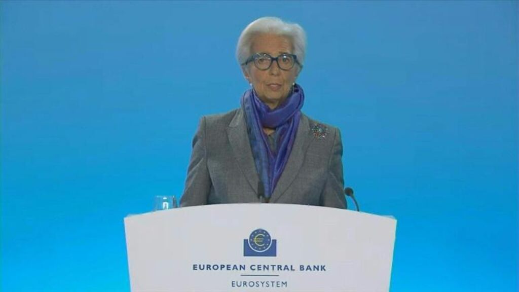 | La présidente de la BCE, Christine Lagarde, lors d'une conférence de presse, le 15 décembre à Francfort, en Allemagne. |
