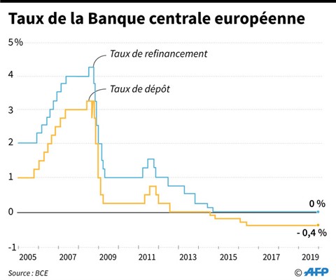 L'institut basé à Francfort a abaissé pour la première fois depuis mars 2016 son taux "de dépôt" (porté de -0,40% à -0,50%), afin d'inciter les banques à prêter aux entreprises et aux ménages plutôt qu'à laisser dormir leurs liquidités à la banque centrale.