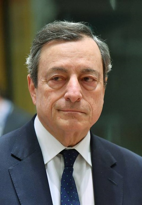 | Le président de la BCE, Mario Draghi, le 11 février, lors d'une réunion de l'eurogroupe. |