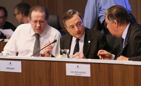| Mario Draghi (centre) lors de la réunion du 22 octobre à Malte. |