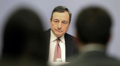 | Mario Draghi, président de la BCE, lors d'une conférence de presse à Francfort, le 24 janvier. |