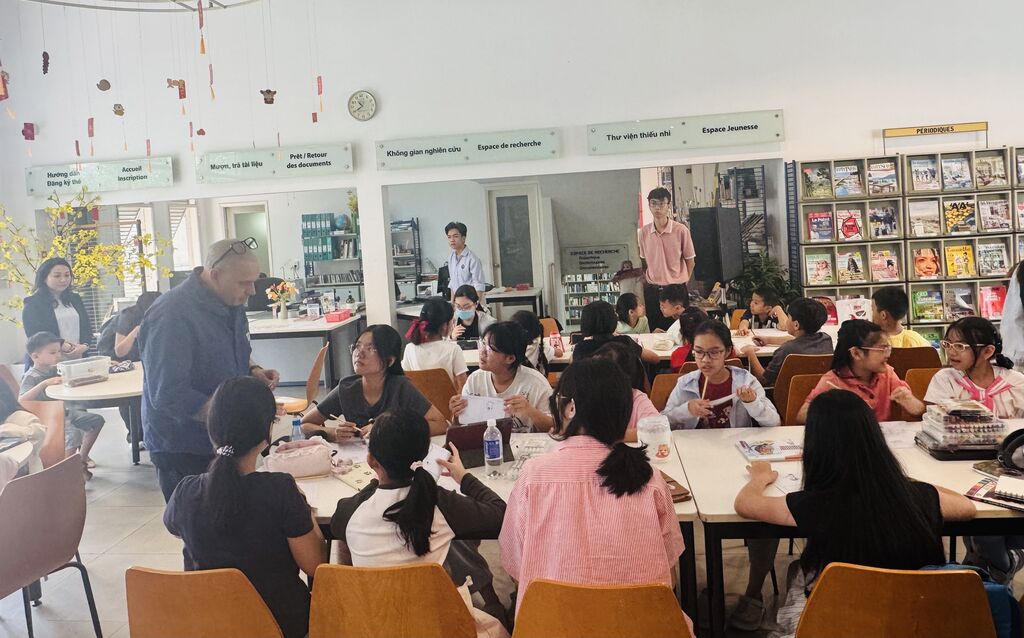 En marge de l’exposition, les organisateurs proposent également un atelier de dessins destiné aux enfants à la bibliothèque de l’IDECAF. Ce projet créatif est animé par Eddy Coubeaux, bédéiste belge francophone installé à Hô Chi Minh-Ville depuis de nombreuses années, qui partage son savoir-faire et son expérience avec les jeunes participants.