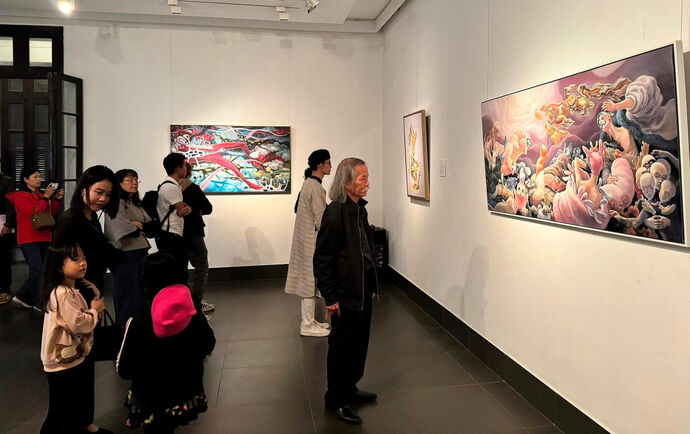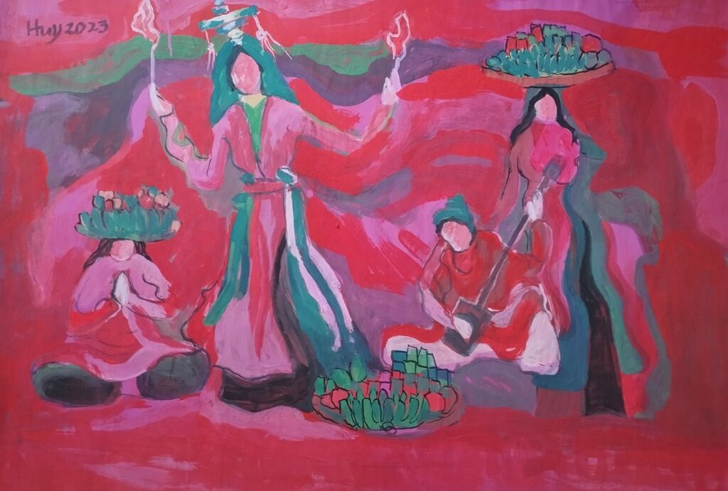 Dans un style folk contemporain, Truong Dinh Huy dévoilera aux spectateurs ses peintures qui reflètent sa passion pour l’esthétique de la culture populaire, les rituels, les airs de quan ho (chant alterné, patrimoine culturel immatériel de l’humanité reconnu par l’Organisation des Nations unis pour la science, la culture et l’éducation) ou encore la spiritualité sacrée des images de maisons communales, de temples...