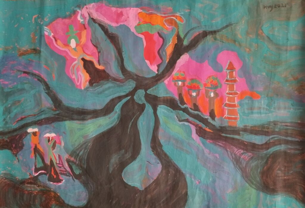 "J'ai l'impression que chacune de ses peintures est comme une comptine ramenant au passé des enfants des zones rurales qui chantaient, jouaient, couraient et sautaient sur les pentes des digues, regardant le ciel et la terre, les arbres, les fleurs, les feuilles, les animaux et tous les gens autour", a-t-il ajouté.