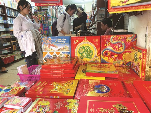 Lors des derniers jours d’octobre, les calendriers sont déjà apparus sur les stands de certaines boutiques et librairies de la rue Đinh Lê (arrondissement de Hoàn Kiêm).