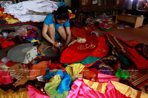 Un petit nombre de familles conservent encore des éventails anciens, et les artisans se font rares. Il ne reste qu’une seule famille qui fait des quạt trổ dans ce village. C’est celle de Dô Thi Tinh, âgée de près de 90 ans. Sa belle fille informe : "L’éventail traditionnel est fabriqué totalement à la main et nous perçons avec des aiguilles de petits trous décoratifs dans la feuille. Ce sont les différences avec les autres éventails en papier".