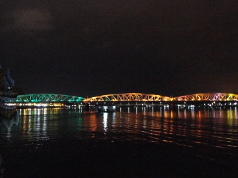 Depuis 2002, le pont Tràng Tiên est doté d'un système d'éclairage coloré pour le Festival de Huê.
