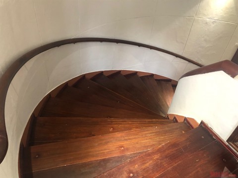 Il y a aussi un réservoir d'eau souterrain ainsi que des toilettes intégrées à chaque étage. L'escalier et les planchers de bois ainsi que toutes les boiseries intérieures sont étonnamment restés intouchés.