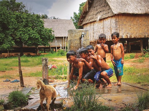 | Maisons sur pilotis typiques des Bahnar au village de Kon So Lal. |