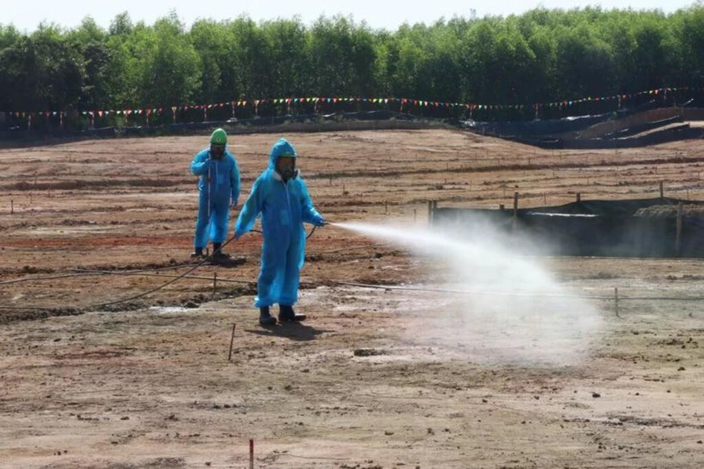 | Décontamination de l'aéroport de Biên Hoà (province de Dông Nai au Sud). |