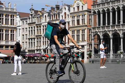 | Les gens portent des masques pour prévenir l'infection du COVID-19 à Bruxelles, en Belgique, le 12 août. |