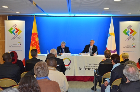 | Conférence de presse organisée le 25 mars à Paris pour annoncerl’organisation du 2e Forum mondial de la langue française en juillet 2015 à Liège. |