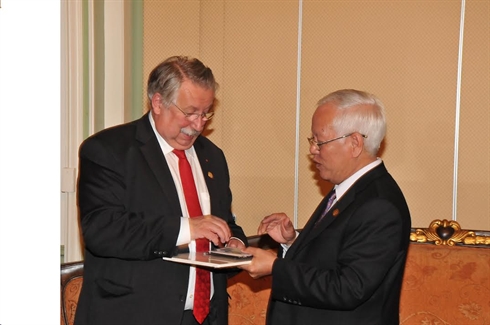 | Le président de la Chambre des représentants de Belgique, André Flahaut (gauche), et le président du Comité populaire de Hô Chi Minh-Ville, Lê Hoàng Quân. |