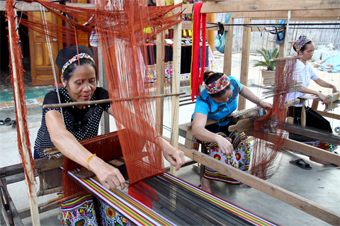| Créatives et habiles, ces tisseuses sont capables de créer beaucoup de sortes de motifs pour décorer leurs vêtements. Photo : Quy Trung/VNA/CVN |