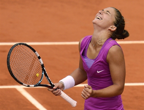 | La joie de l'Italienne Sara Errani après sa victoire sur l'Australienne Samantha Stosur, le 7 juin au tournoi de Roland-Garros. |