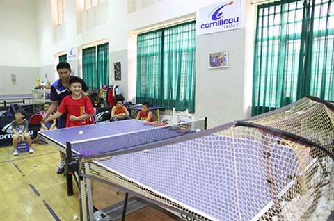 “Pour équiper ma salle, j’ai choisi la marque française Cornilleau. Cette entreprise m’a fourni une dizaine de tables, de raquettes et de filets”, a spécifié Hô Ngoc Thuân.