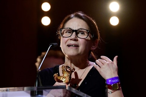 | La réalisatrice Hongroise Ildiko Enyedi reçoit un Ours d'or pour son film film à "On body and soul", le 18 février 2017 à Berlin. |