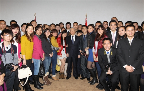 Mercredi soir 26 novembre, Nguyên Phu Trong a eu une rencontre avec le personnel de l'ambassade du Vietnam et des représentants des Vietnamiens résidant en Biélorussie.