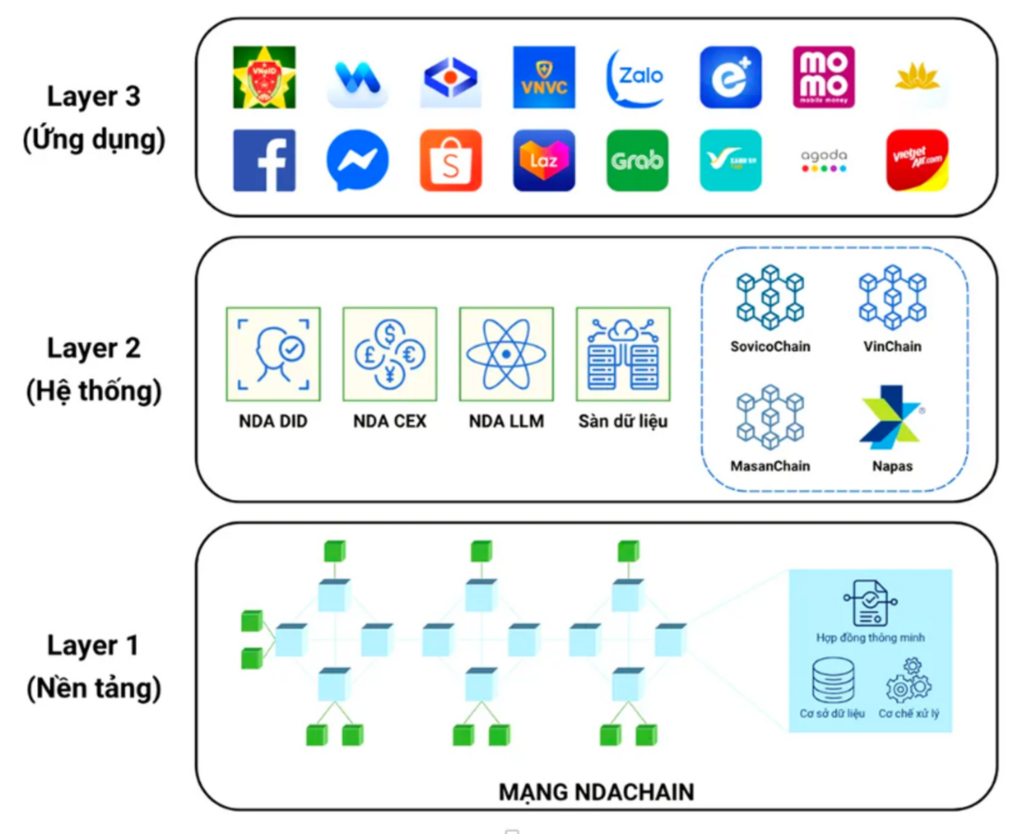 | Diagramme de la plateforme nationale de blockchain avec les niveaux en cours de développement. |