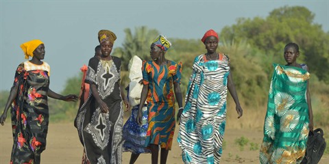 | Des femmes se rendent au marché de la ville d’Udier, au Soudan du Sud. |