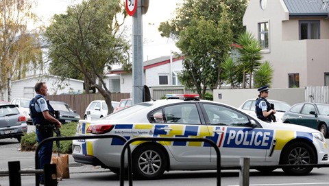 | Des policiers sécurisent la zone devant la mosquée Masjid al Noor après la fusillade à Christchurch, en Nouvelle-Zélande, le 15 mars. |