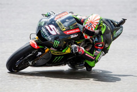 | Le pilote Yamaha Tech 3 Johann Zarco sur le circuit de Sachsenring, le 30 juin |