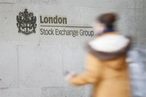 | Devant la Bourse de Londres, le 29 décembre 2020. |