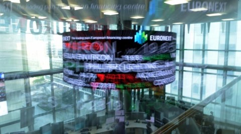 | La salle de contrôle d'Euronext, l'opérateur de la Bourse de Paris, le 27 avril 2018 à La Défense. |