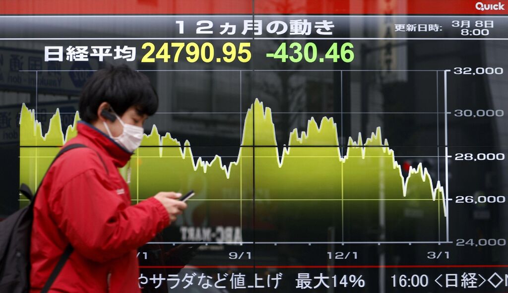 | Graphique boursier de l'indice Nikkei 225 à la Bourse de Tokyo, au Japon. |