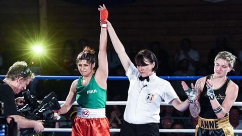 Sadaf Khadem s'est vu décerner la victoire à l'unanimité des juges. Un symbole pour l'Iranienne qui devient, selon son coach le Franco-iranien Mahyar Monshipour, ancien champion du monde de boxe anglaise , "la première Iranienne de l'histoire à effectuer un combat officiel".
