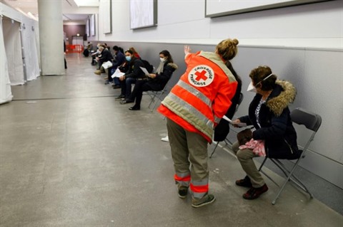 En France, où se développe une troisième vague d'infections, un centre de vaccination géant a ouvert lundi au Stade de France, l'enceinte de l'équipe de football championne du monde, en banlieue parisienne.