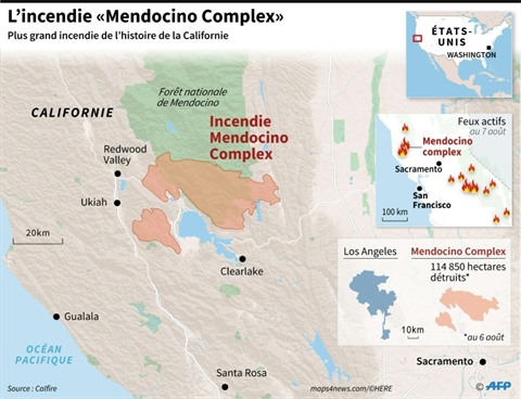 "Si le #Mendocinocomplex était une ville, ce serait la quatorzième plus grande des États-Unis. Plus grand que New York, Chicago, Philadelphie et Houston", a tweeté mardi 7 août Cal OES, le bureau des services d’urgence du gouverneur de Californie.