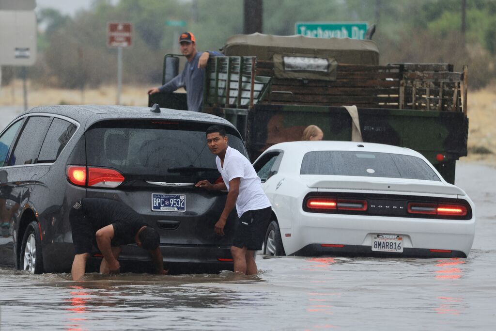 Dans la ville voisine de Cathedral City, les secours évacuaient les habitants coincés par la boue et les eaux en les transportant dans des tractopelles, a constaté un photojournaliste de l'AFP.