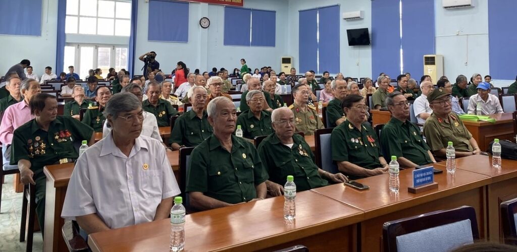 | Anciens combattants et volontaires de la campagne Hô Chi Minh réunis 50 ans après la libération. |