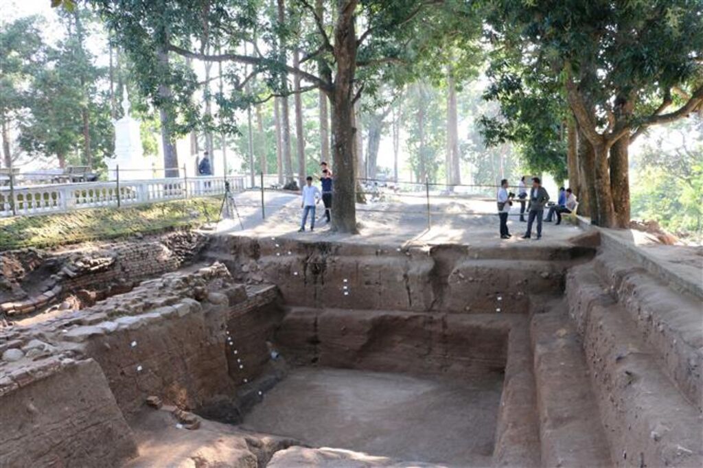 | Fouilles archéologiques dans la cour de la pagode de Linh Son Cô Tu, dans le vestige national spécial d'Óc Eo - Ba Thê, province d'An Giang (Sud). |