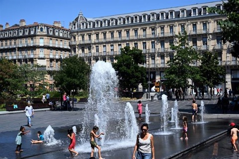 | Des vaporisateurs d'eau à Paris le 8 août en pleine canicule. |