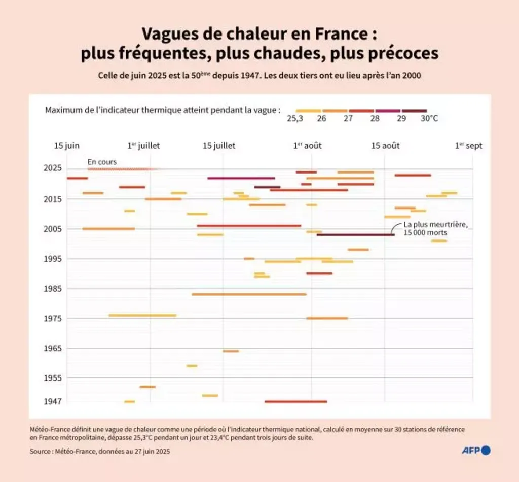| Vagues de chaleur en France : plus fréquentes, plus chaudes, plus précoces. |