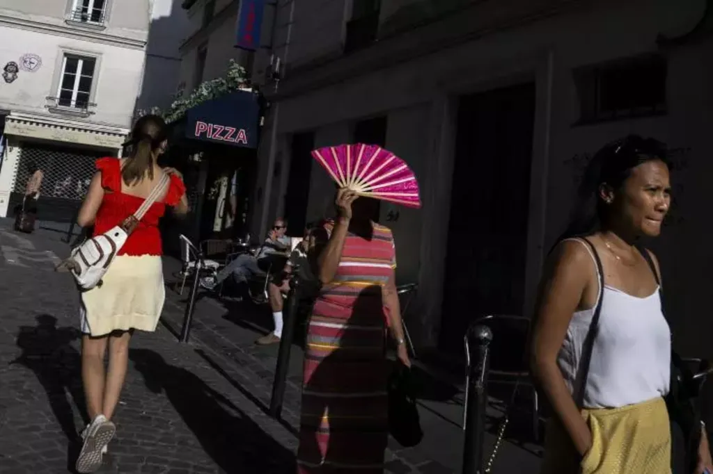 | Une passante se protège du soleil avec un éventail à Montmartre, à Paris, le 12 août, en pleine vague de chaleur. |