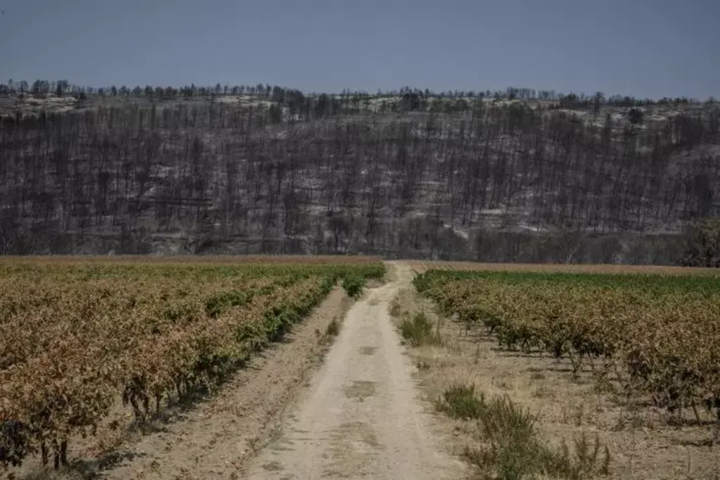 | Des vignobles brûlés par l'incendie à Saint-Laurent-de-la-Cabrerisse (Aude) le 14 août. |