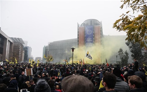 Une fois arrivés, les manifestants ont lancé des pétards et fumigènes. La tension est montée peu avant 14h00 heure locale devant la Commission européenne où les manifestants ont jeté des projectiles en direction des policiers. Les autopompes sont arrivées peu de temps après et les forces de l'ordre ont également eu recours à des gaz lacrymogènes et à la cavalerie, rapporte le journal belge La Libre. La police bruxelloise a arrêté une centaine de personnes suite à ces débordements.