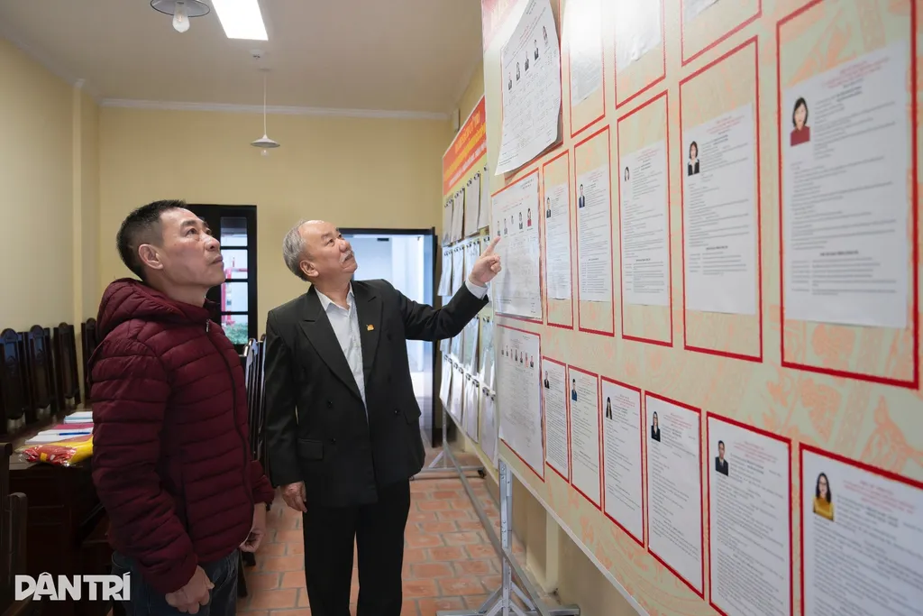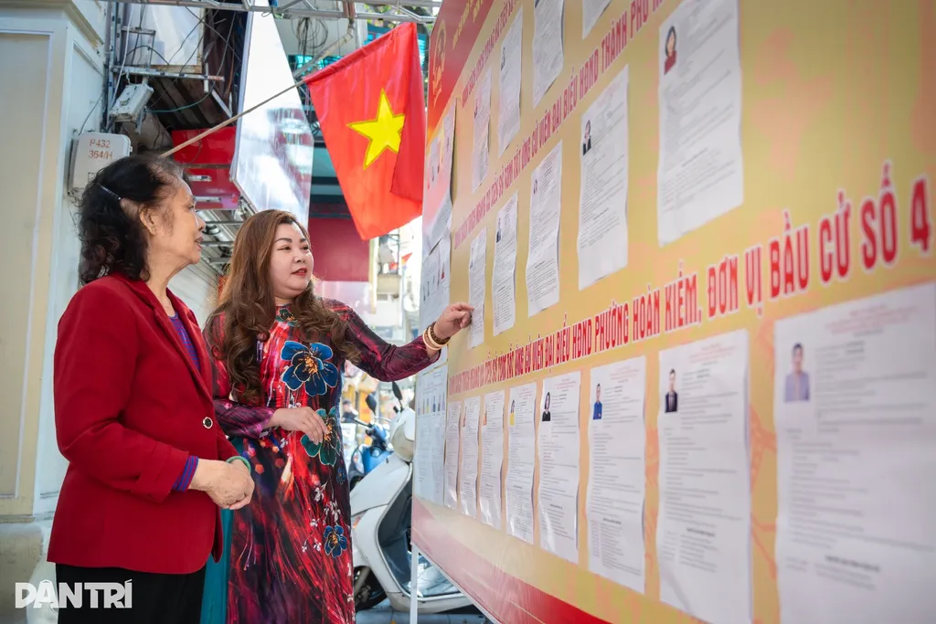 | Les habitants du Vieux quartier consultent les informations électorales à la maison commune Kim Ngân. |
