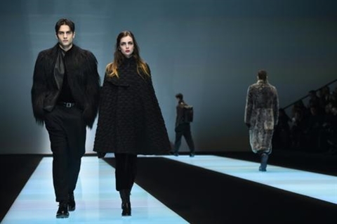 | Des créations de la maison Armani présentées lors de la Fashion week automne/hiver 2016/2017 à Milan. |