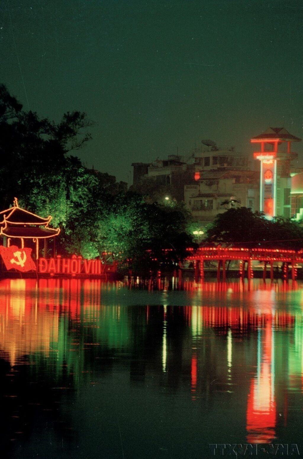 | Vue nocturne du lac Hoàn Kiêm au cœur de la capitale Hanoï. Photo : Minh Dao/VNA/CVN |