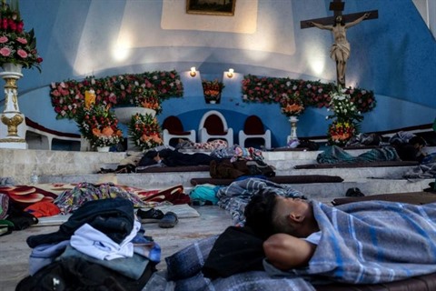 | Des migrants, pour la plupart honduriens, se reposent dans une église de la ville mexicaine de Puebla, le 3 novembre. |