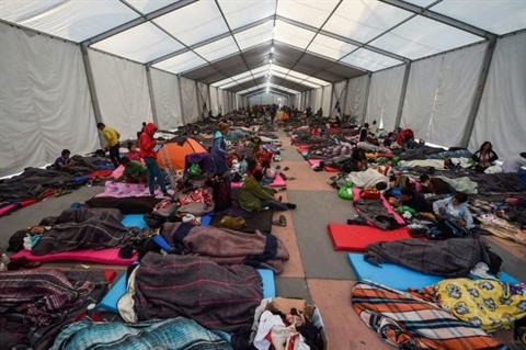 Les migrants ont passé la nuit sous des tentes ou dans les gradins d'un stade de Mexico, cherchant à récupérer leurs forces et à se réchauffer, alors que la capitale mexicaine est située à plus de 2.200 mètres d'altitude.