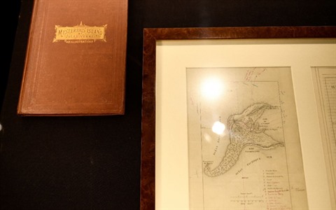 Réalisée en 1874 pour ce que d'aucuns considèrent comme le plus beau roman de Jules Verne (1828-1905), le dessin de "L'Île mystérieuse" constitue le clou d'une vente consacrée à l'univers du grand romancier français.