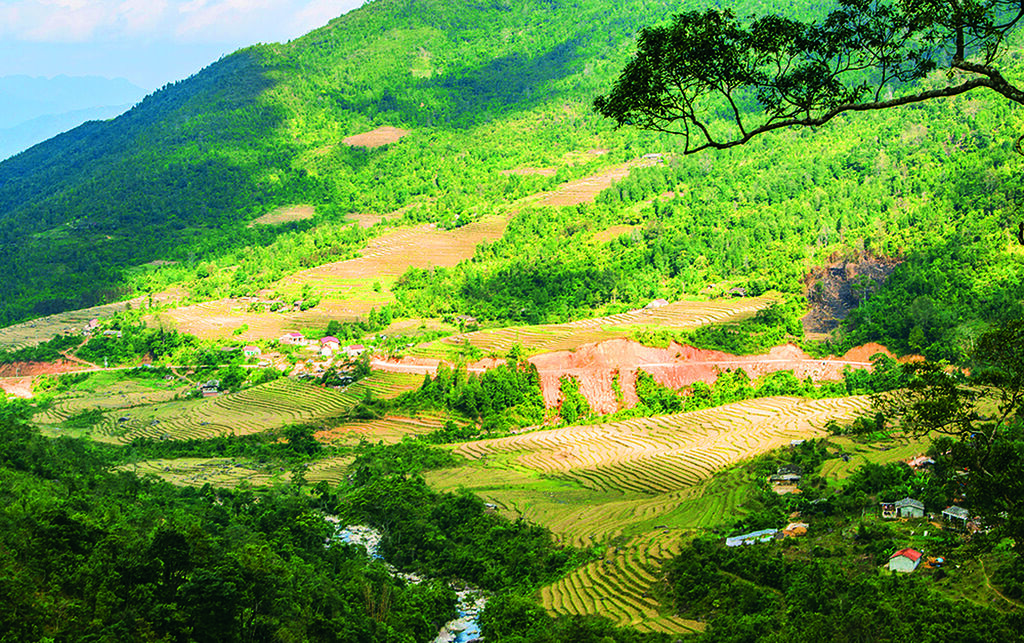 | Le village de Khe Tiên est niché entre de hautes montagnes, offrant aux voyageurs des paysages magnifiques. |