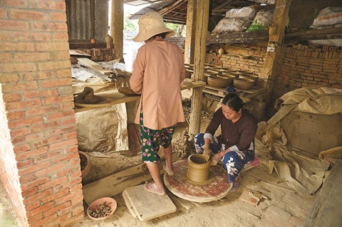 | L’artisane Nguyên Thi Thu (droite) en train de modeler un produit. |