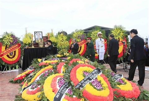 Au nom du Comité d'organisation des funérailles et de la famille du président Trân Dai Quang, le vice-Premier ministre permanent Truong Hoa Binh, chef du Comité d’organisation des funérailles a remercié les dirigeants et les anciens dirigeants du Parti, de l'État, du Front de la Patrie du Vietnam, les anciens combattants, les représentants des organisations de masse, des localités, des unités et des forces armées, les intellectuels, les dignitaires religieux et des dirigeants des pays, des délégations diplomatiques, des amis internationaux et des compatriotes dans tout le pays sont venus rendre hommage au président Trân Dai Quang, ont envoyé des couronnes de fleurs, ont assisté à la cérémonie commémorative et à la cérémonie d'enterrement pour envoyer le président Tran Dai Quang au dernier lieu de repos.