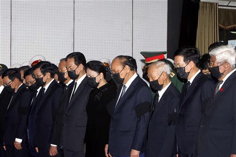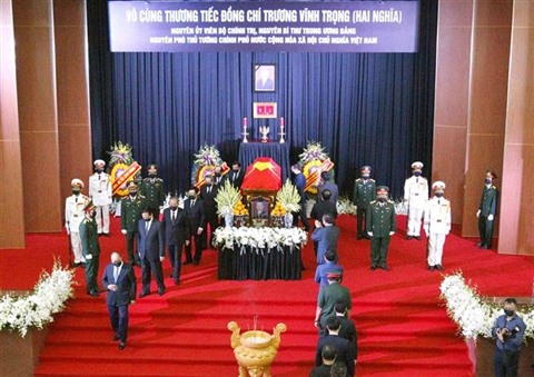 La cérémonie funéraire de Truong Vinh Trong a lieu le même jour à la Maison funèbre nationale à Hanoï, en présence de dirigeants et anciens dirigeants du Parti, de l’État, du Front de la Patrie du Vietnam et d’autres organes et de responsables de localités.